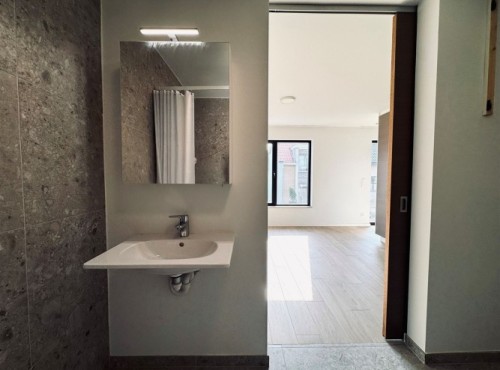 Dit serviceflat omvat een lichtrijke leefruimte met volledig ingerichte open keuken, ruime slaapkamer voorzien van ingemaakte kleerkasten, moderne ruime badkamer met inloopdouche, lavabo met lavabomeubel en hangtoilet. Bovendien beschikt deze flat over een zonnig terras en een parkeerplaats.
