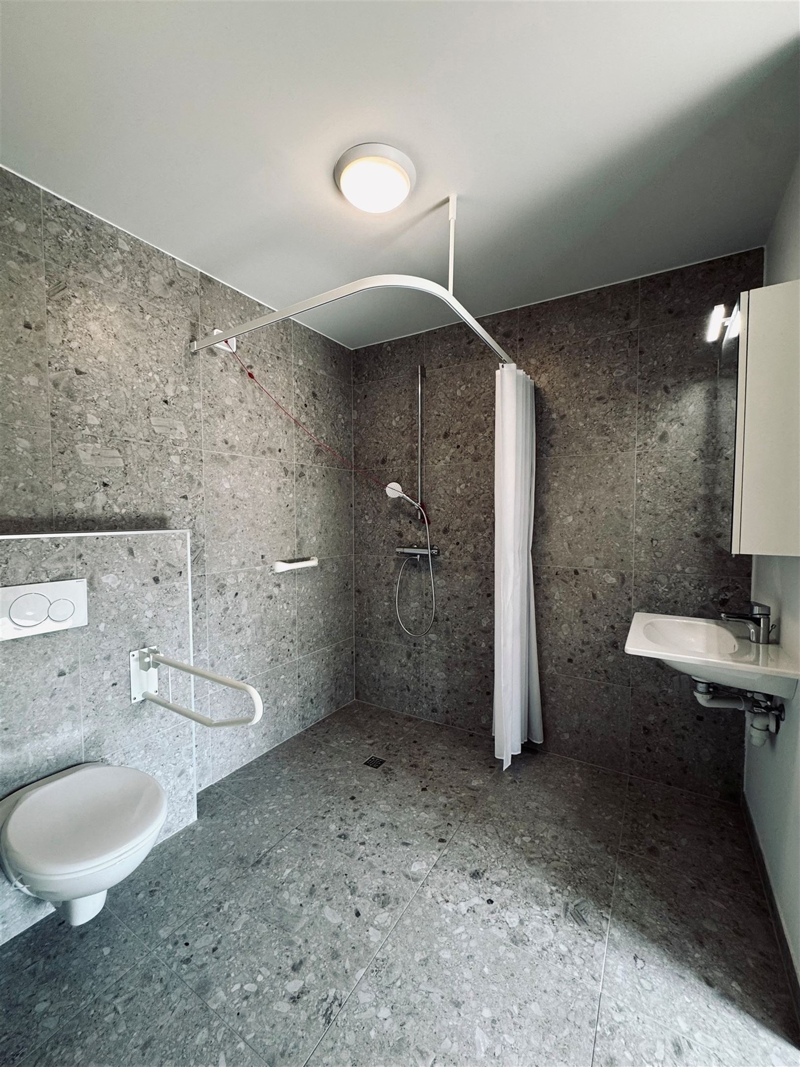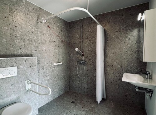 De flat is volledig afgewerkt met kwalitatieve duurzame en onderhoudsvriendelijke materialen en is natuurlijk volledig aangepast aan de noden van rolstoelgebruikers.