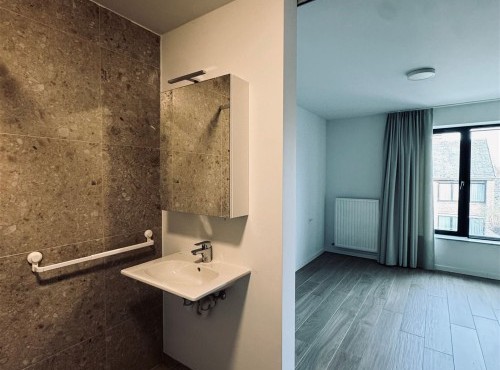 Dit serviceflat omvat een lichtrijke leefruimte met volledig ingerichte open keuken, ruime slaapkamer voorzien van ingemaakte kleerkasten, moderne ruime badkamer met inloopdouche, lavabo met lavabomeubel en hangtoilet. Bovendien beschikt deze flat over een zonnig terras en een parkeerplaats.
