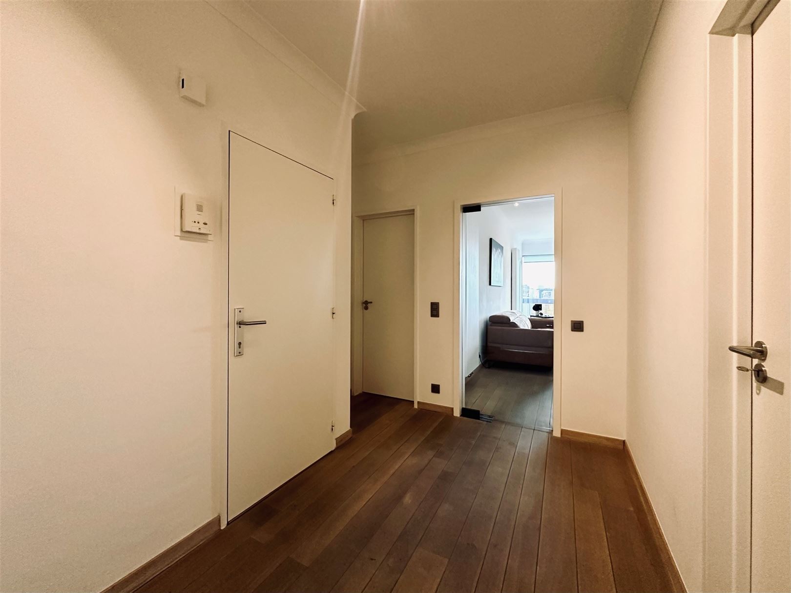 Via de parlofoon aan de algemene inkomdeur komt u terecht in de algemene inkomhal. Zowel via de lift als via de trappenhal bereikt u de derde verdieping.